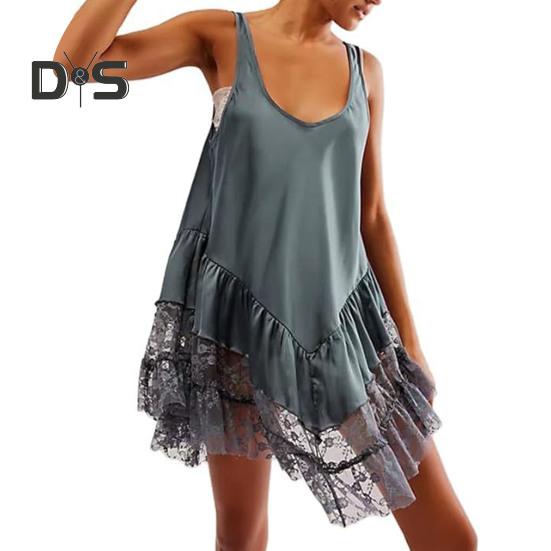 Женское платье из прозрачного кружева в стиле пэчворк с U-образным вырезом, плиссированное, с цветочной вышивкой, свободное, без рукавов, однотонное женское платье-жилет L серый