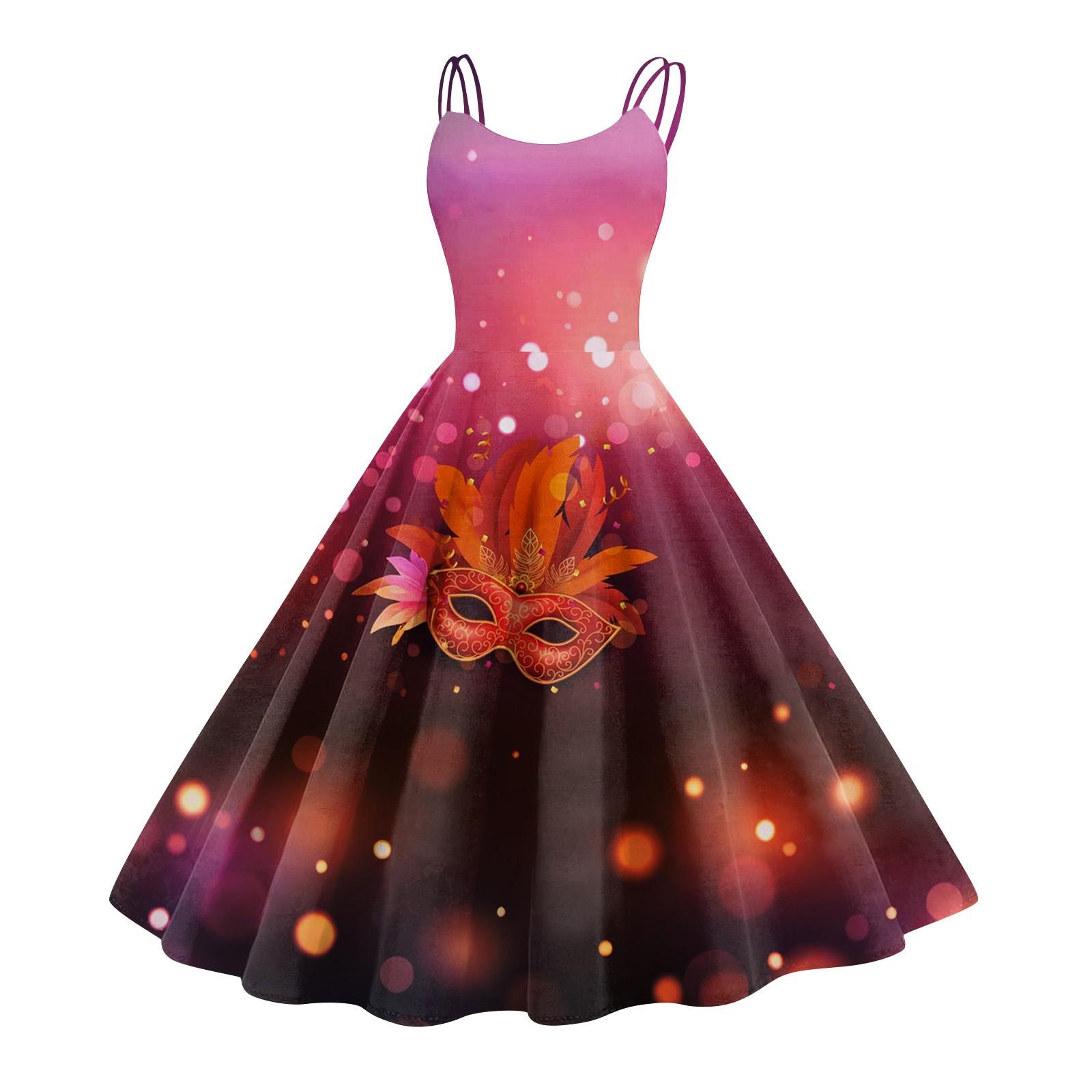 Женское платье, карнавальный принт, сексуальные подтяжки, большой дисплей, ретро-платье XL киноварь
