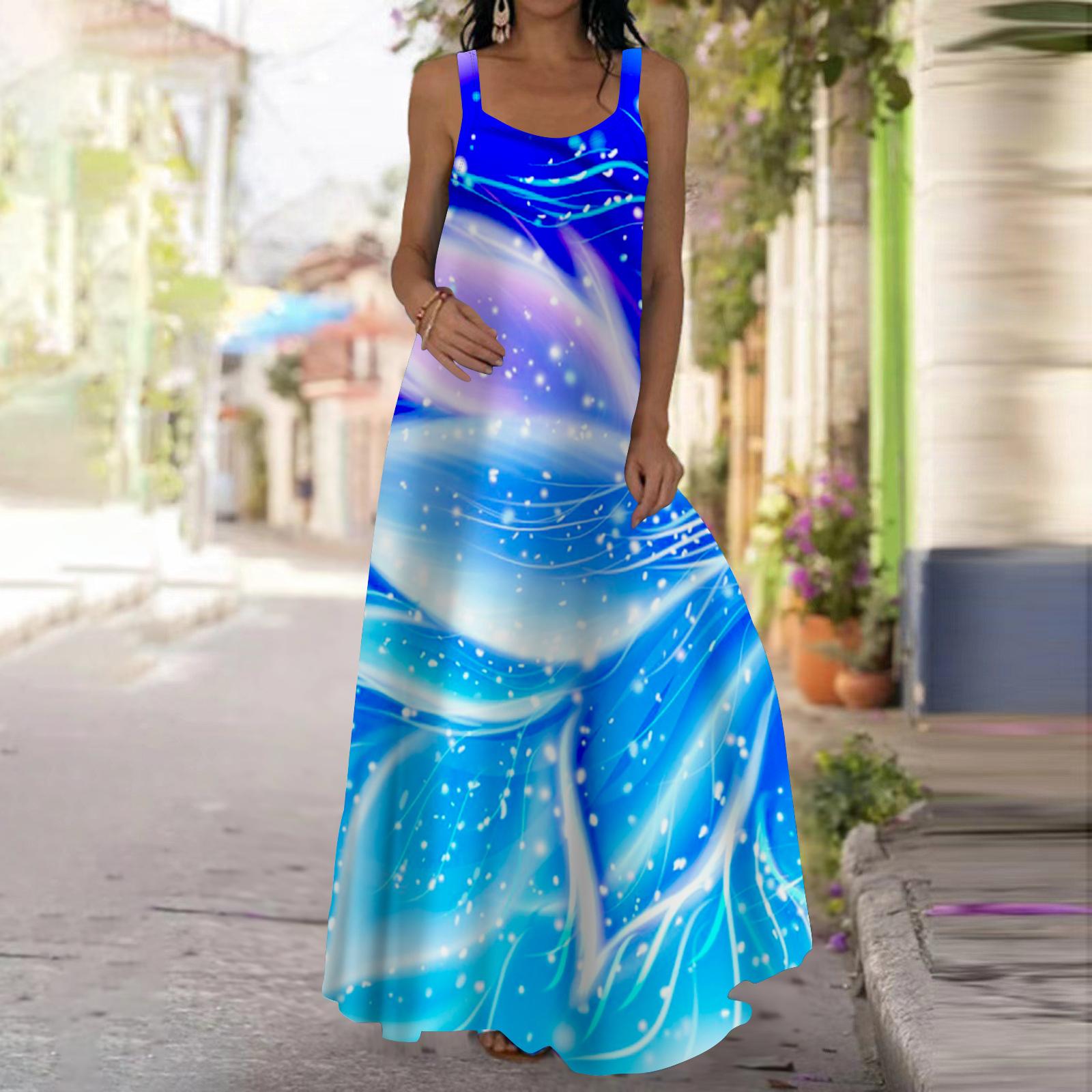 Женское платье-комбинация Длинное платье макси Платье с принтом флуоресцентных листьев Весна и лето с v-образным вырезом Для отдыха и отпуска 8XL синий