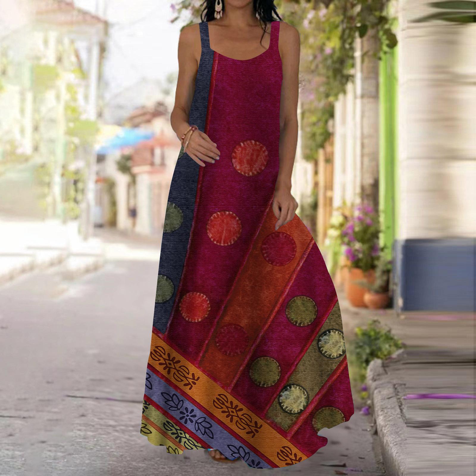 Женское платье-комбинация, длинное платье макси, платье с квадратным принтом, весна и лето, V-образный вырез, для отдыха и отпуска 8XL коричневый