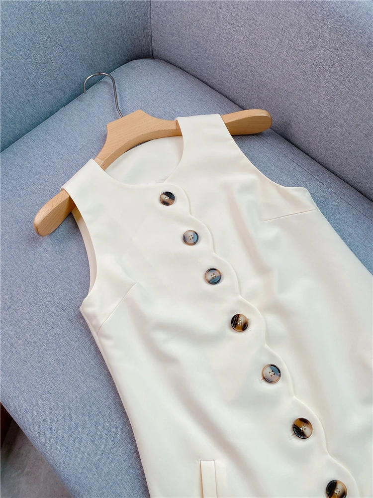 Женское платье-майка с круглым вырезом, бежевое свободное простое платье без рукавов с волнистыми краями, лето 2023