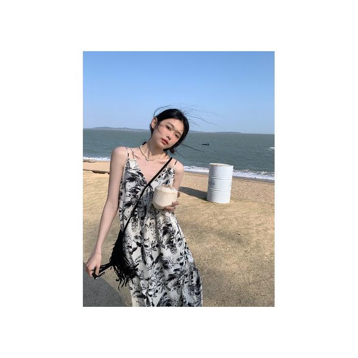 Женское платье-майка с цветочным принтом в стиле чернил - Французская летняя пляжная одежда Large