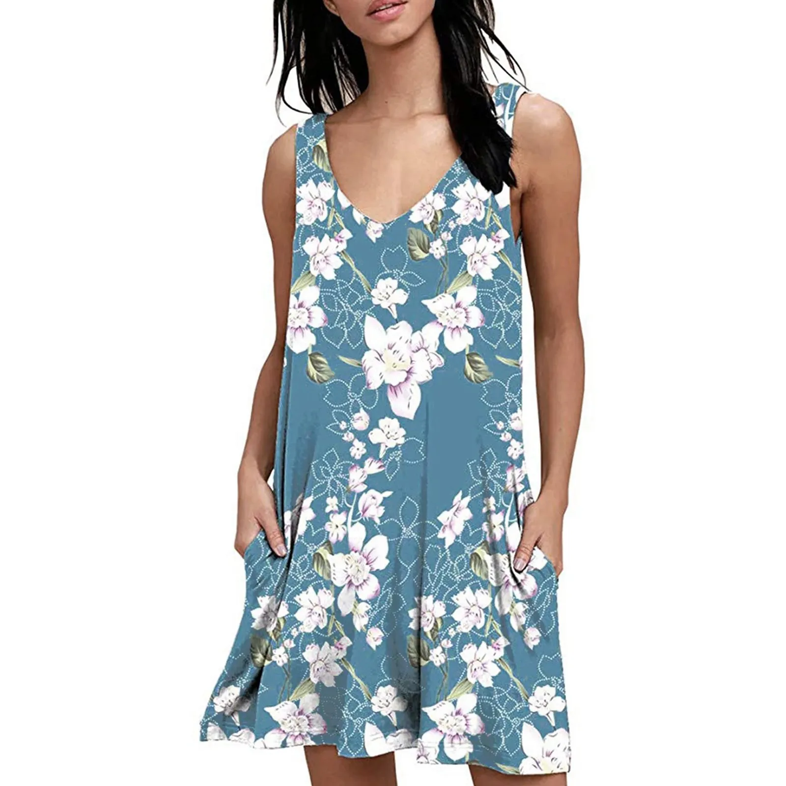 Женское платье макси без рукавов, с V-образным вырезом и цветочным принтом