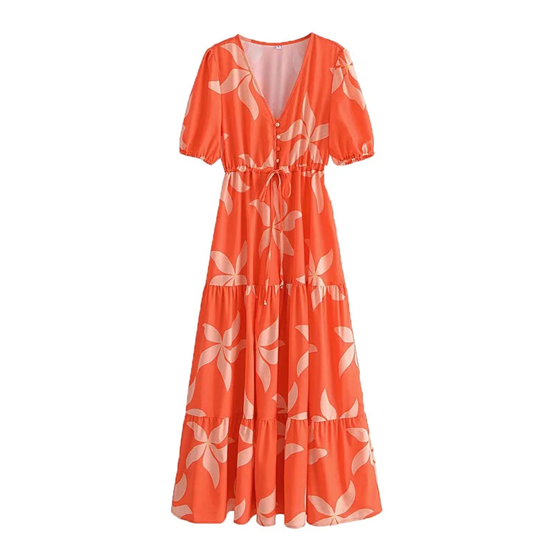 Женское платье макси в стиле ретро, с V-образным вырезом и коротким рукавом