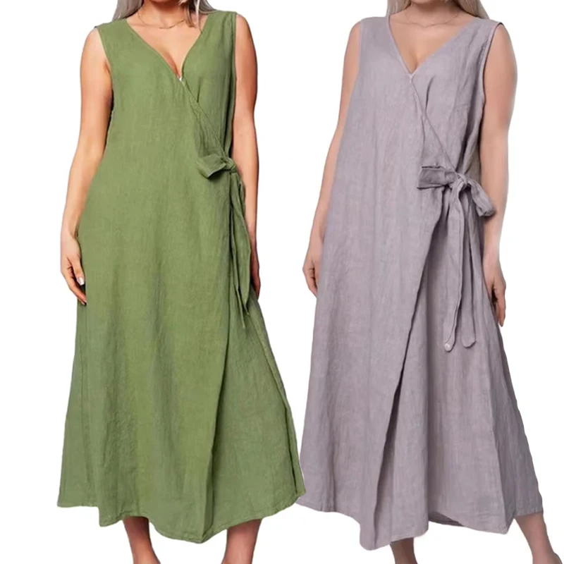 Женское платье-макси на шнуровке, однотонное тонкое платье с длинным рукавом