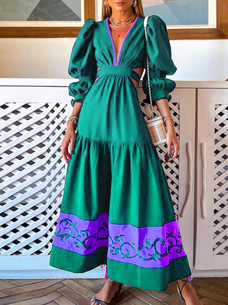 Женское платье-макси с глубоким V-образным вырезом, демисезонное