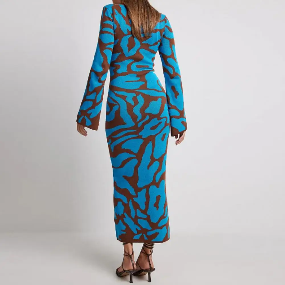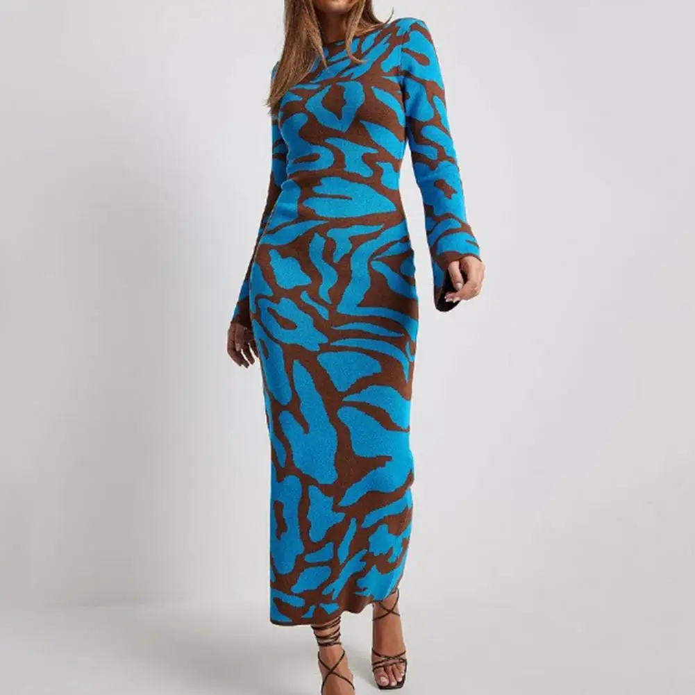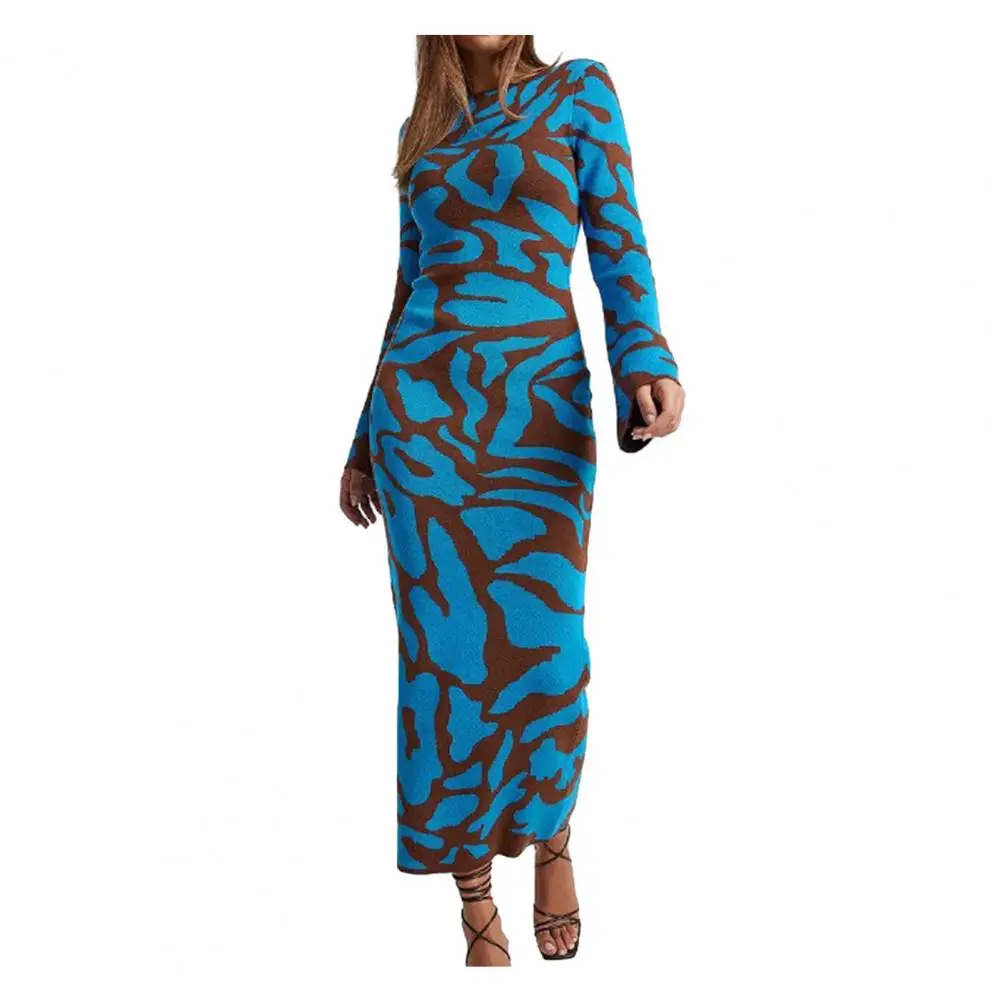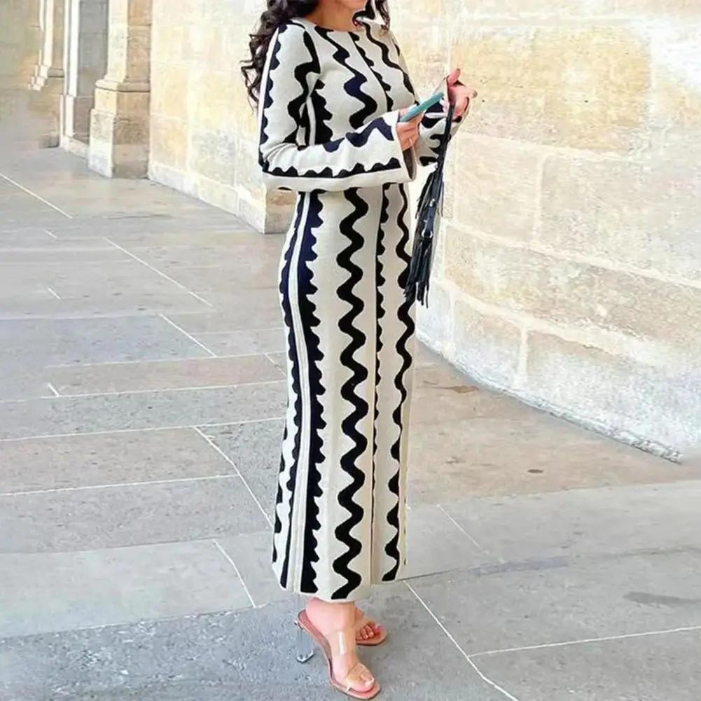 Женское платье-макси с длинным рукавом, облегающее платье с длинным рукавом и волнистым принтом, Осень-зима