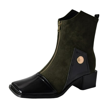 PMUYBHF Ladies Leather Suede Square Toe Flat Toe Heel Splicing Large Size Boots Ankle Boots Short Boots 48.98