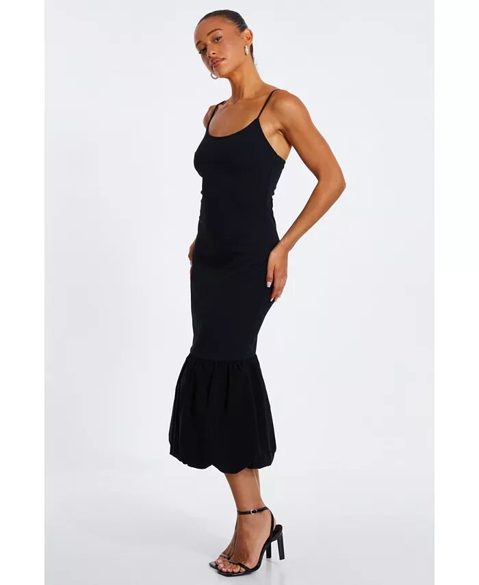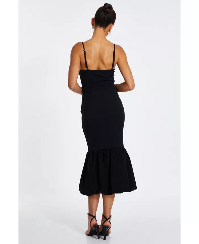 Женское платье-миди из джерси и бенгалина с пуховиком и бретелями QUIZ, черный