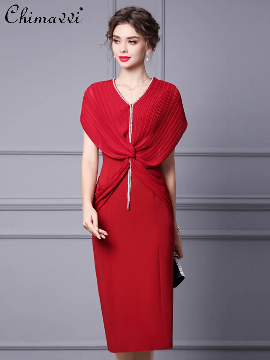 Женское платье-миди с высокой талией, красное приталенное платье в социалитовом стиле, лето 2023