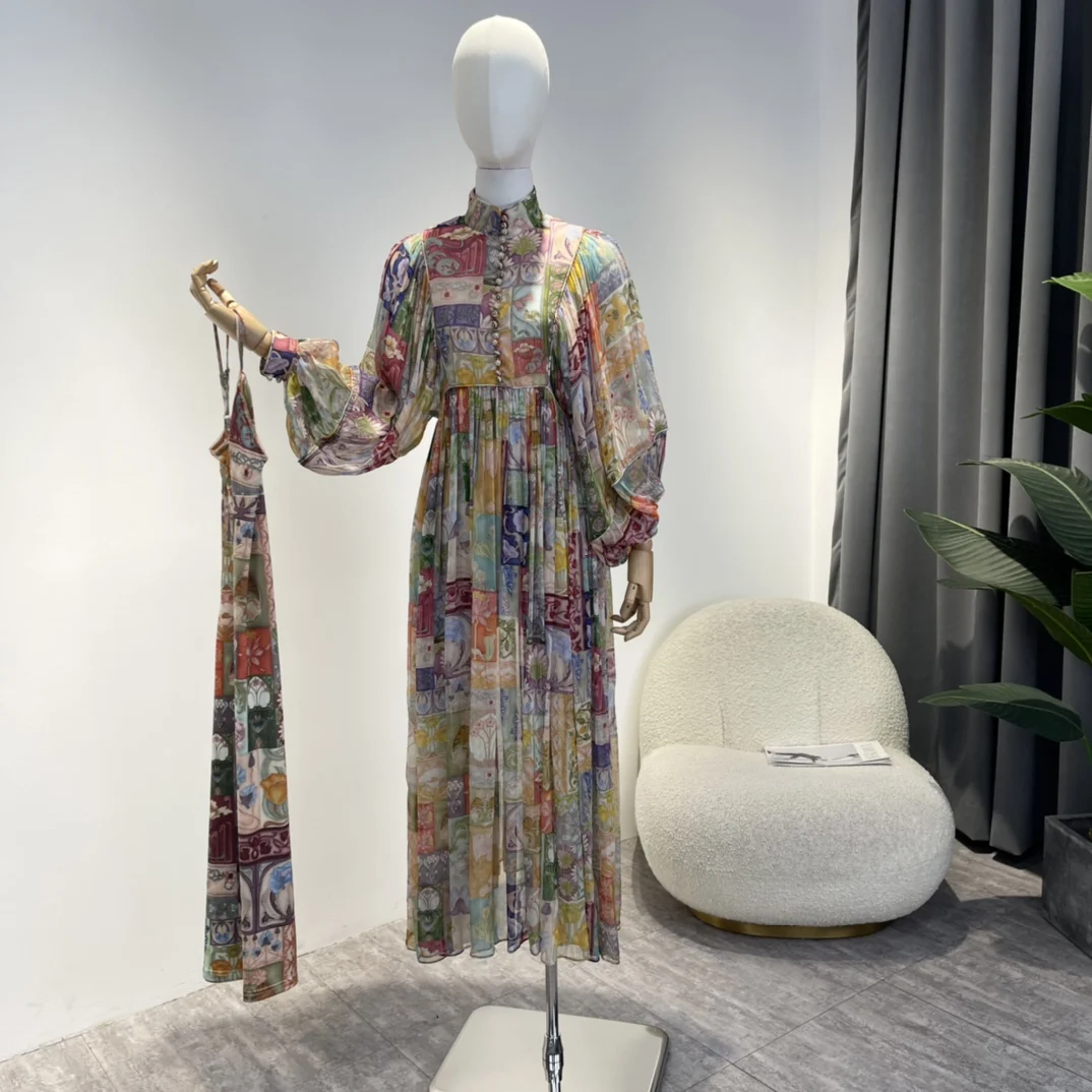 Женское платье миди с высокой талией, разноцветное свободное платье миди с соединением внакрой, осень 2022