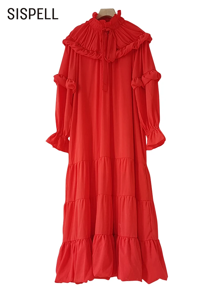 Женское платье миди с принтом SISPELL, платье с воротником-стойкой и рукавами-фонариками, Бандажное платье с высокой талией, весна 2022
