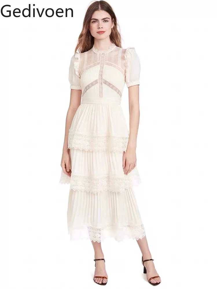Женское платье-миди Gedivoen, летнее подиумное вечернее платье с коротким рукавом-фонариком, блестящее платье с подолом