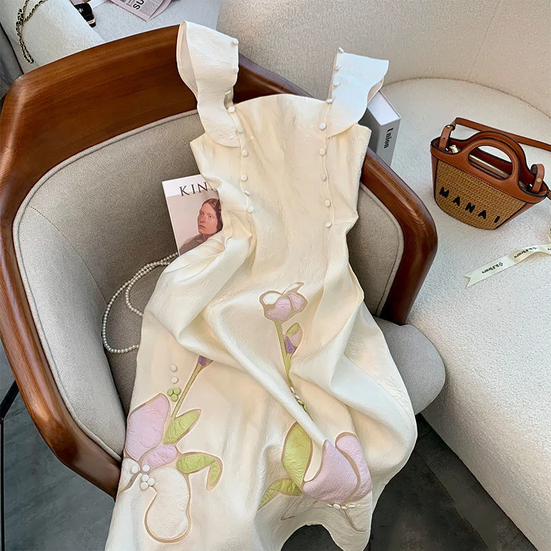 Женское платье на бретелях-спагетти, белое длинное платье с принтом во французском дворцовом стиле, лето 2022