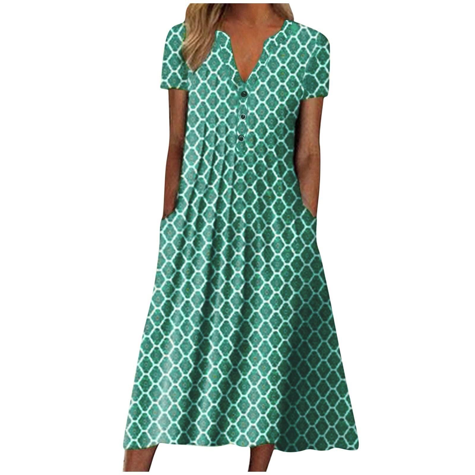 Женское платье на пуговицах с цветочным карманом и коротким рукавом с V-образным вырезом, повседневное свободное платье L зелёный