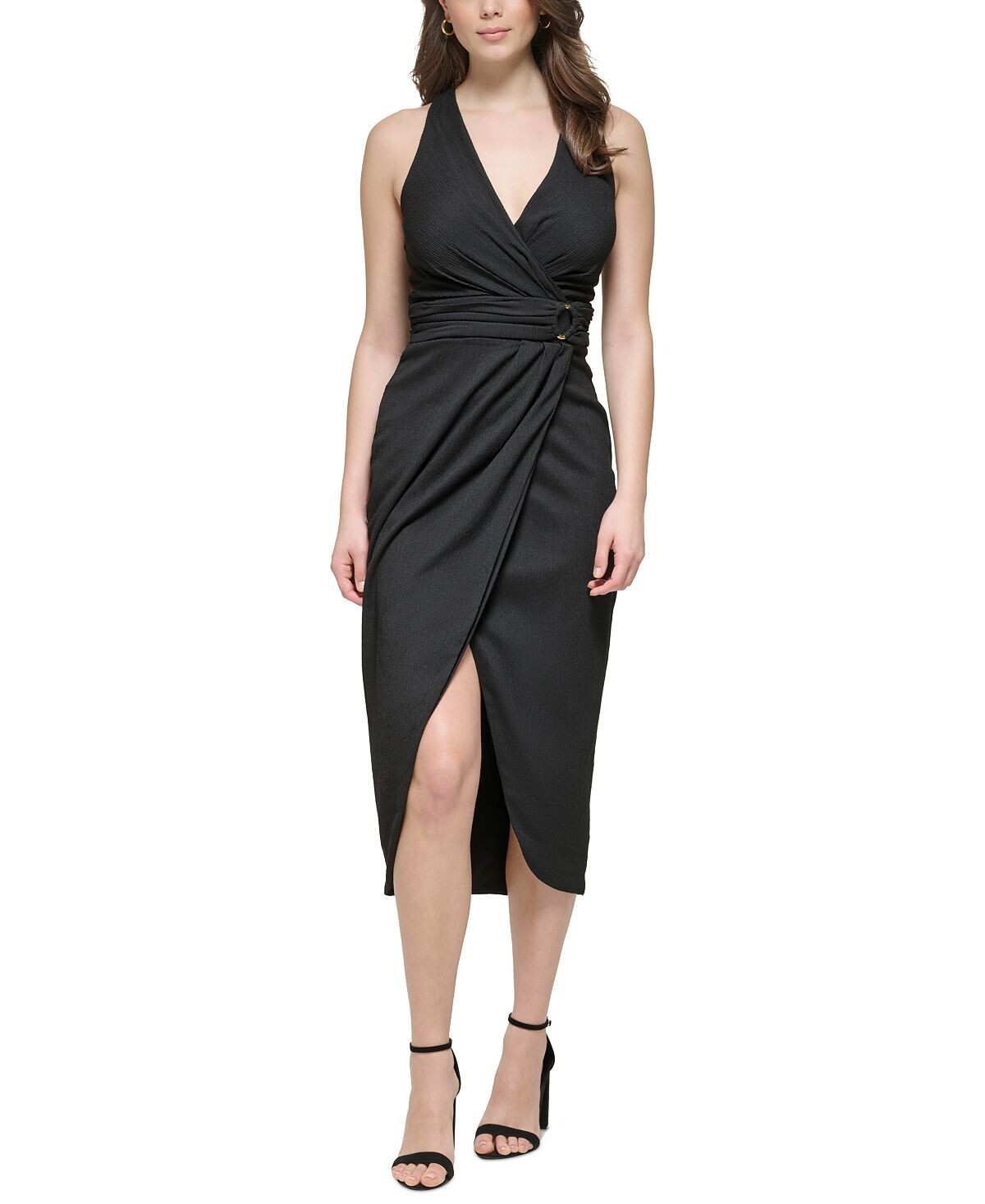 Женское платье перекрещивающейся спины с вырезом и уплотнительным кольцом со сборками GUESS, черный