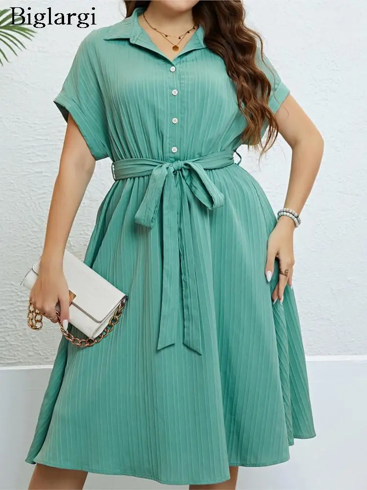 Женское платье-рубашка средней длины, летнее Плиссированное Повседневное платье с оборками, свободное модное женское платье 2023