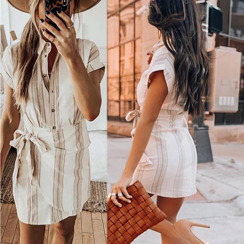 Женское платье-рубашка с коротким рукавом, летнее свободное Повседневное платье с высокой талией в офисном стиле