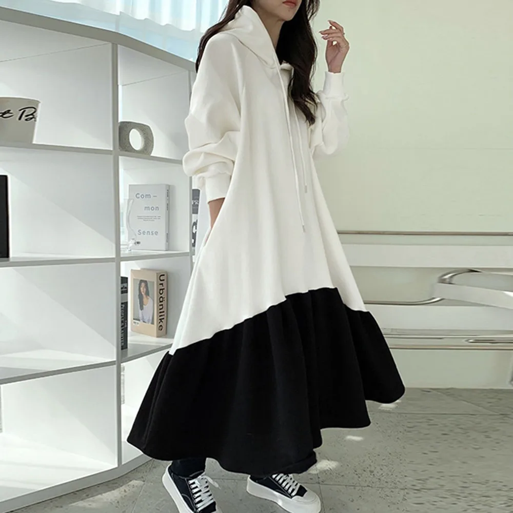 Женское платье-свитер с рюшами, длиной до щиколотки, с капюшоном и кулиской