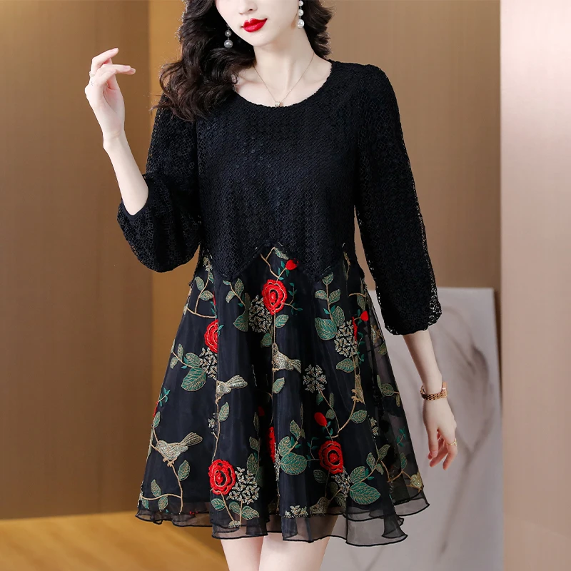 Женское платье средней длины, тонкое платье с вышивкой на животе, весна-лето 2023