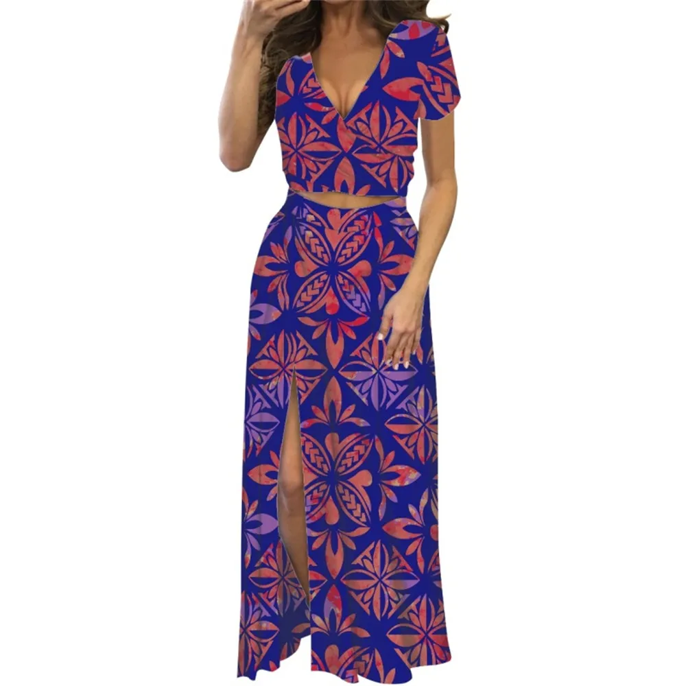 Женское платье с глубоким V-образным вырезом, коротким рукавом и разрезом