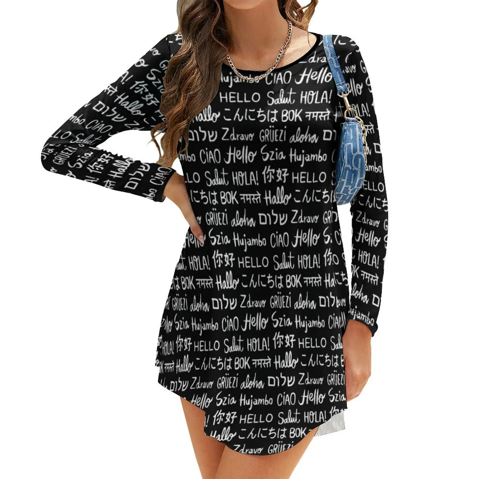 Женское платье с длинным рукавом, Летнее белое платье с рисунком Hello Word на разных языках, 2024
