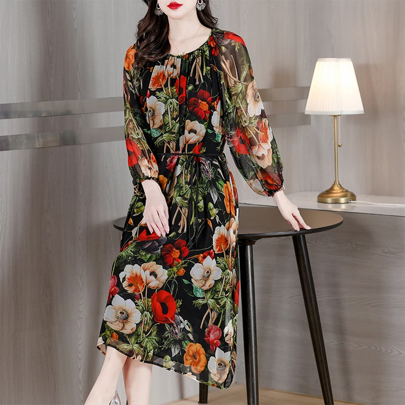 Женское платье с длинным рукавом и круглым вырезом, свободного покроя
