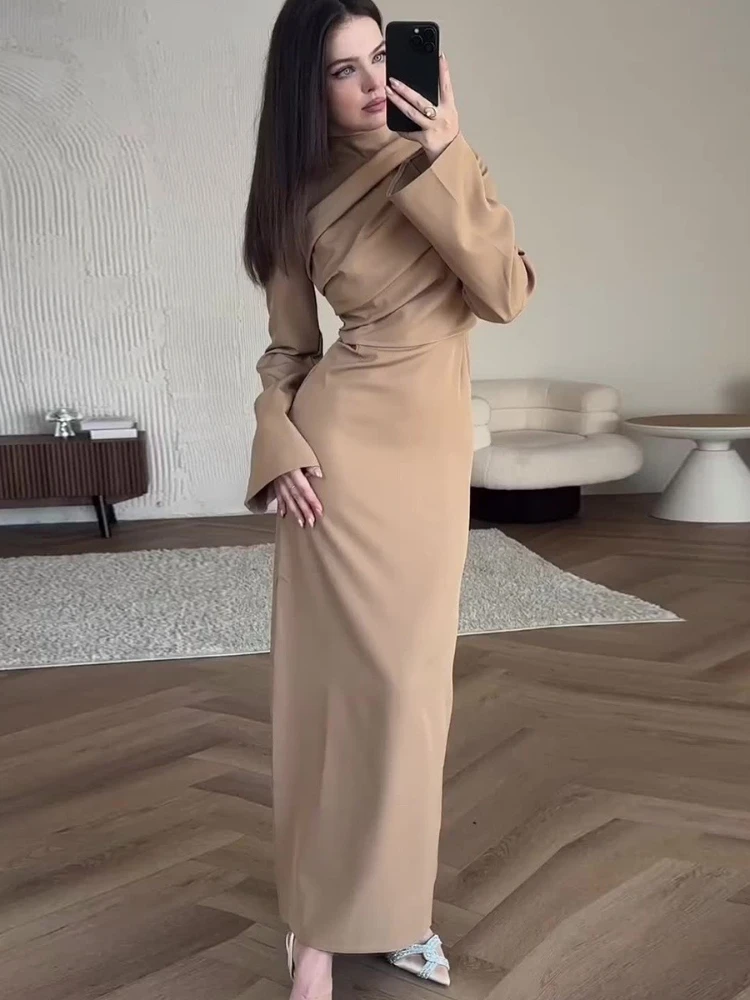 Женское платье с длинным рукавом, плиссированное платье в мусульманском стиле