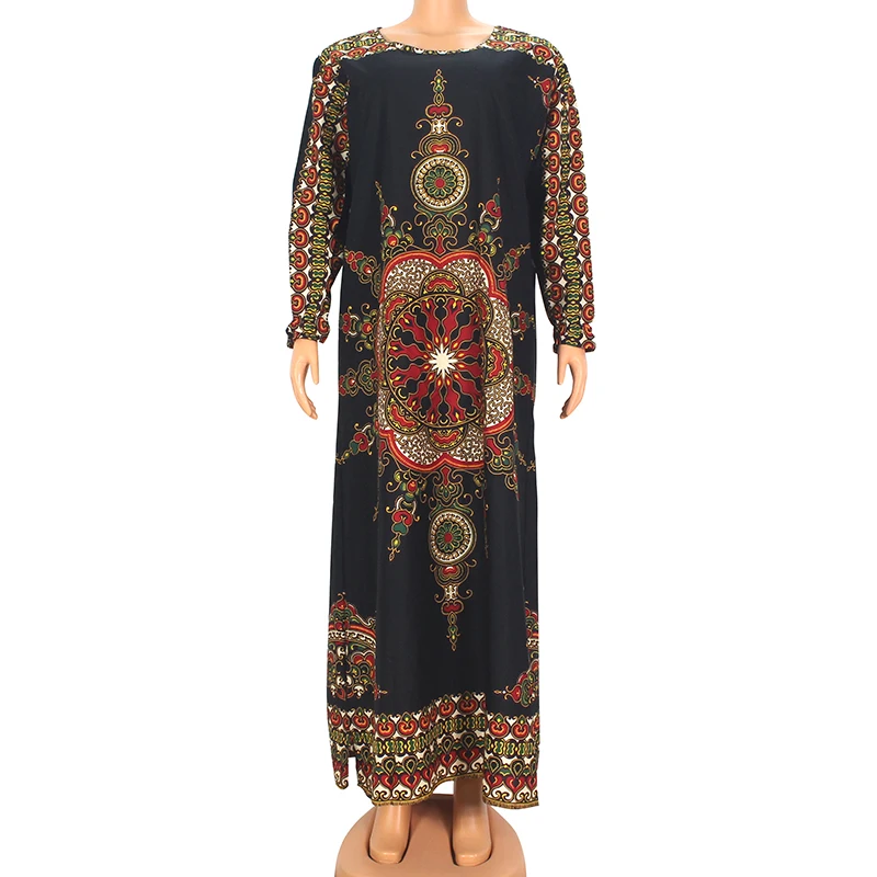 Женское платье с длинным рукавом, черное винтажное платье из 100% хлопка с принтом