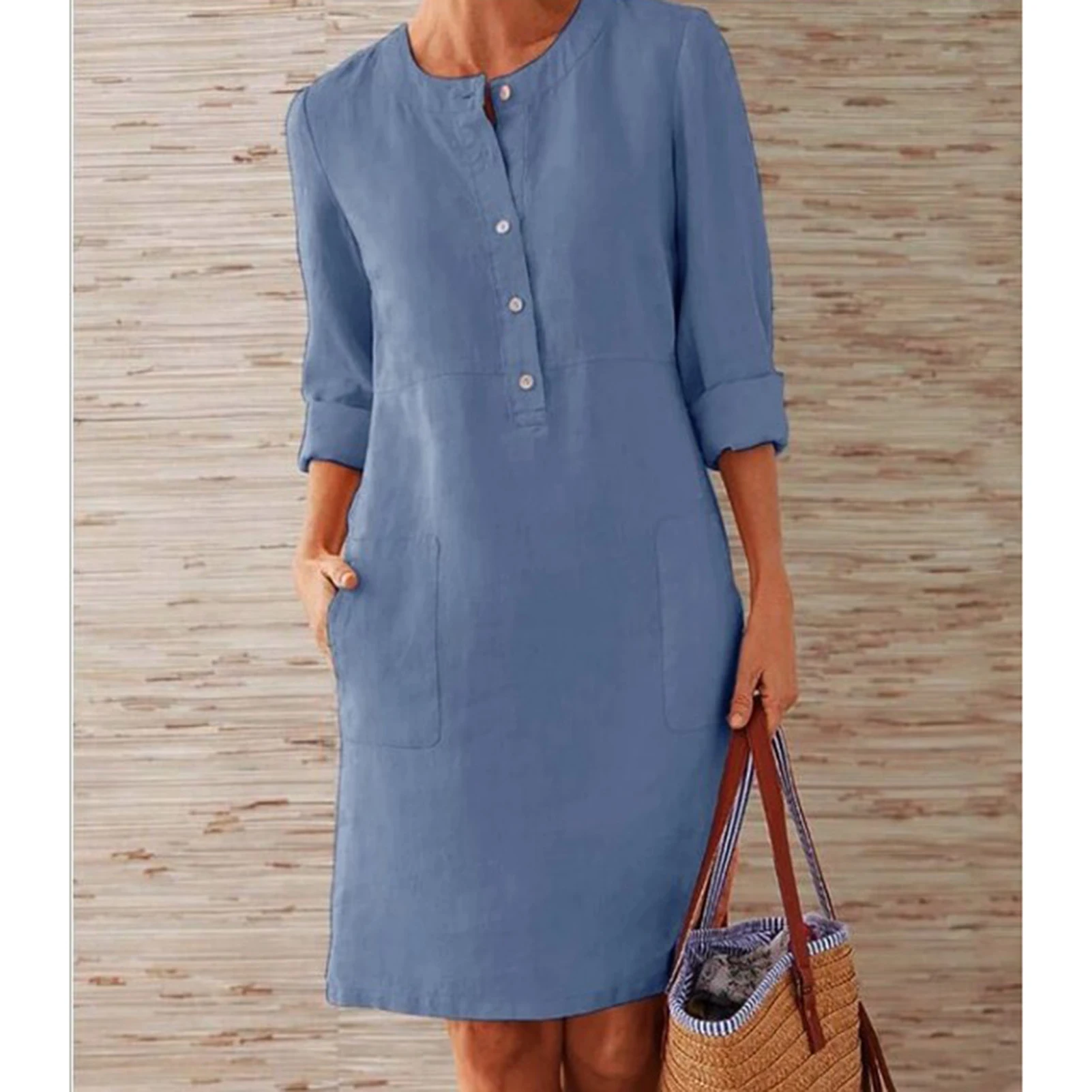 Женское платье с карманами, легкое дышащее платье с длинным рукавом, повседневная школьная рабочая одежда NIN668