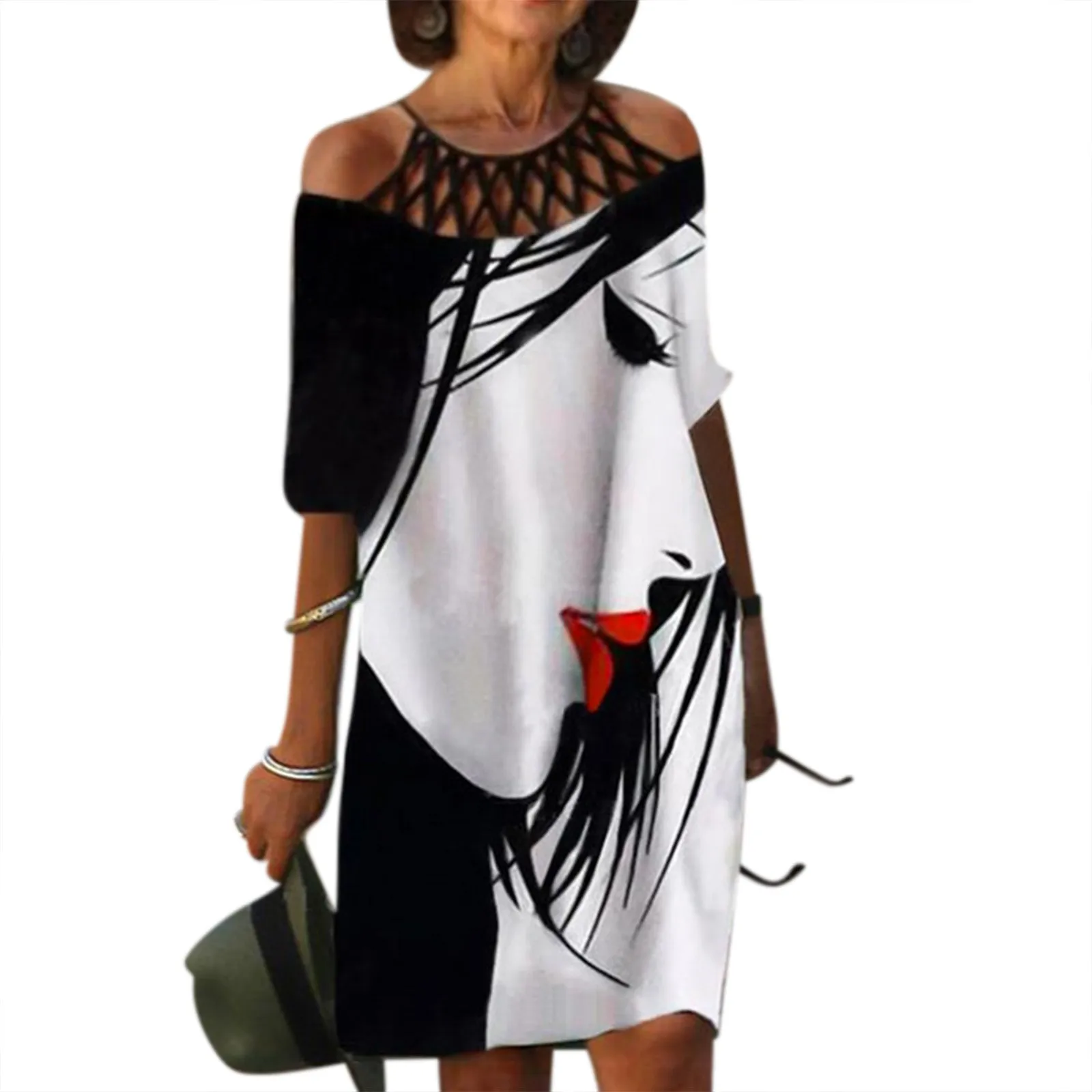 Женское платье с коротким рукавом, круглым вырезом и вырезами, до колена