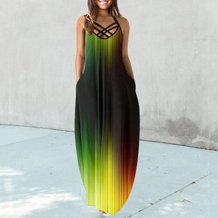 Shpwfbe Summer Dresses For Women 2023 Plus Size Dress For Women Womens Casual Sleeveless Plus Size Loose Prints Cross Strap Long Maxi