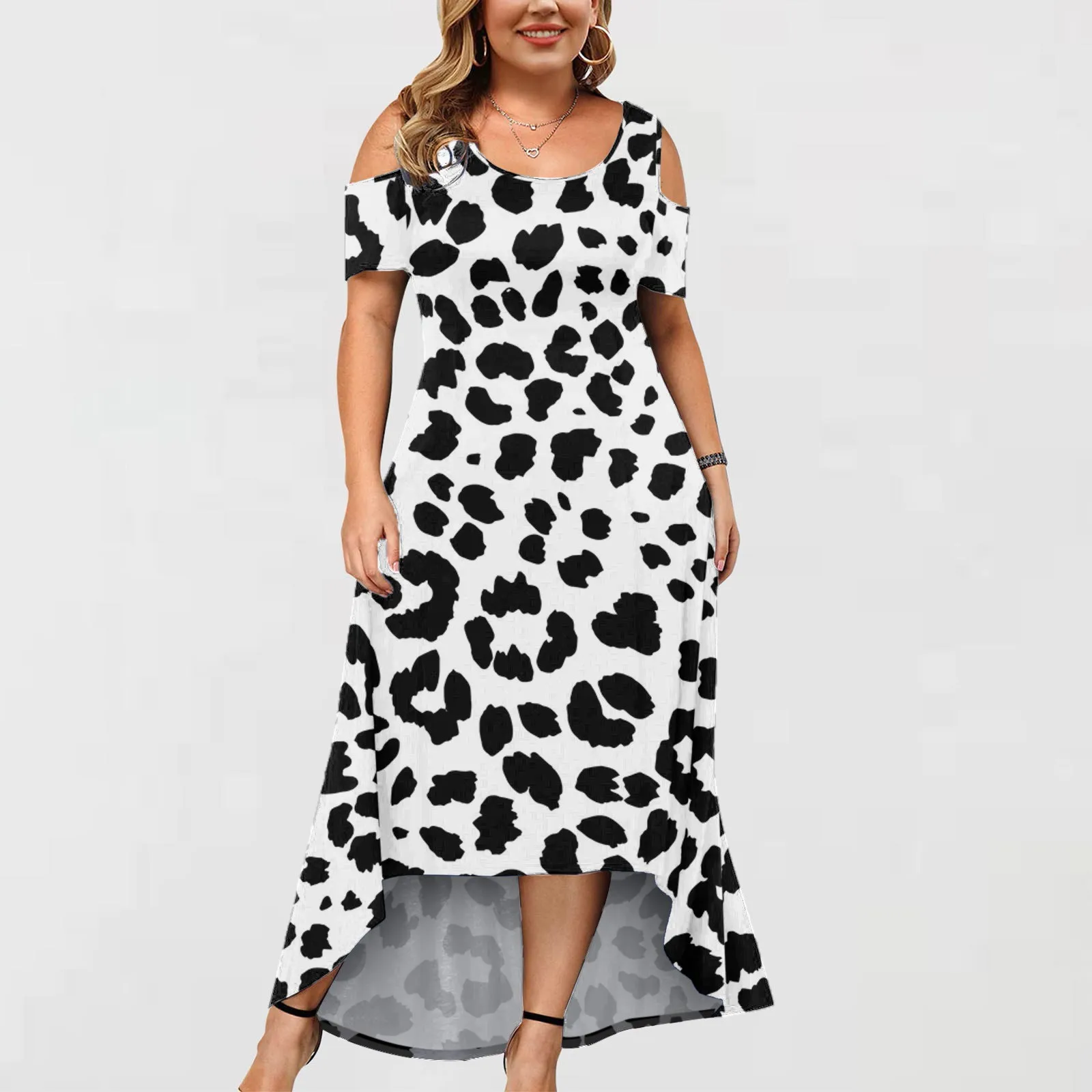 Женское платье с коротким рукавом, леопардовым принтом и открытыми плечами