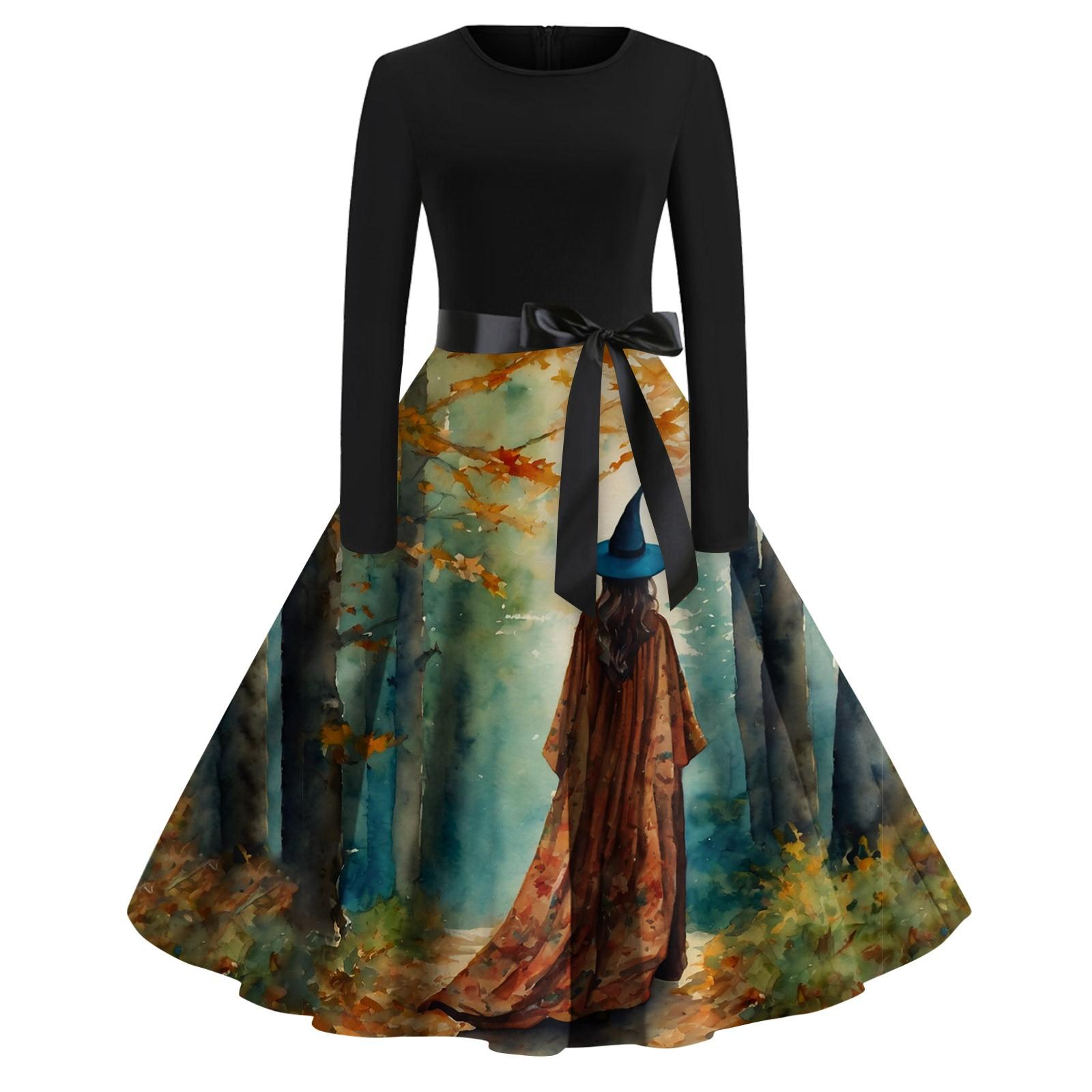 Женское платье с круглым вырезом и длинными рукавами с принтом на Хэллоуин и большим свободным облегающим платьем XXXXL