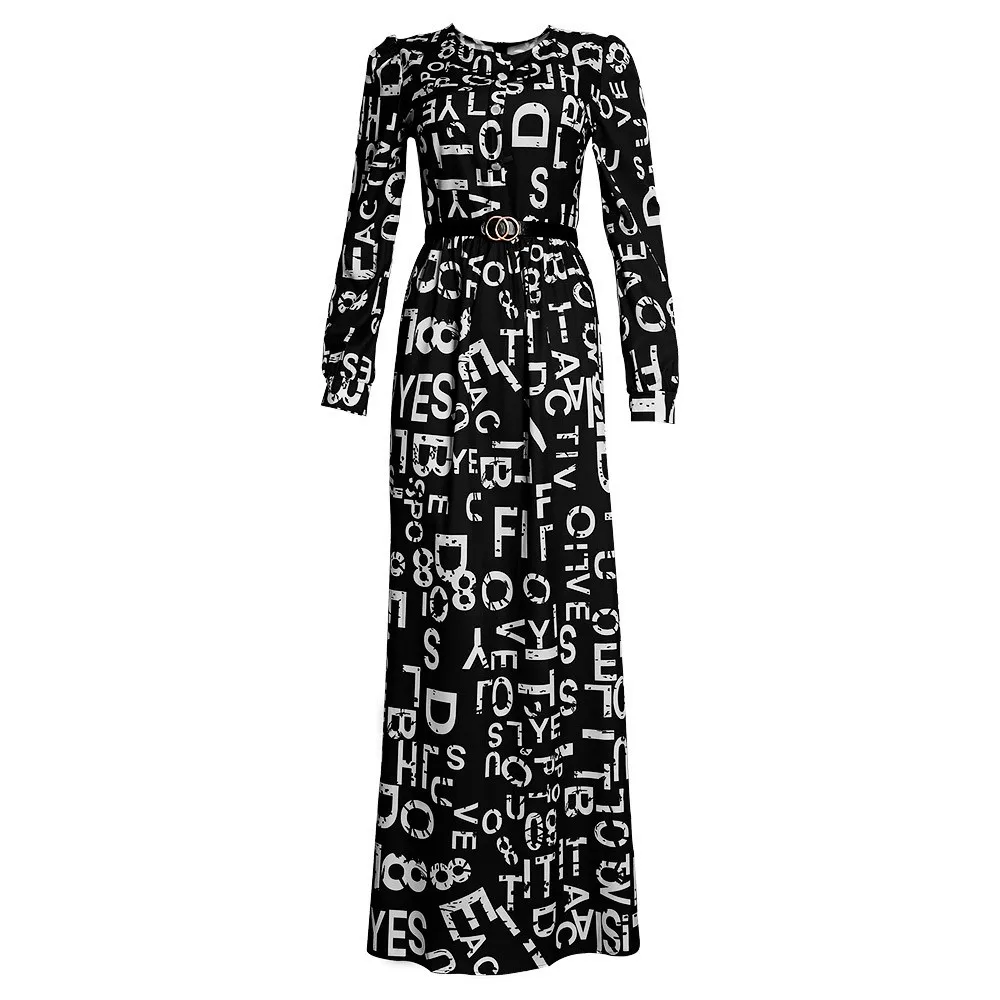 Женское платье с круглым вырезом, длинным рукавом и геометрическим принтом