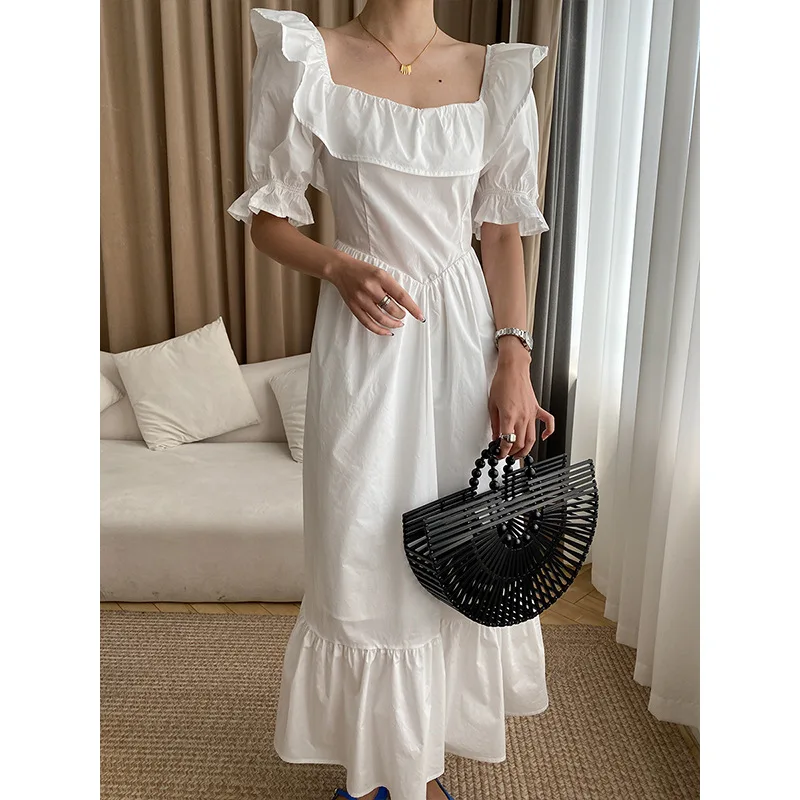 Женское платье с оборками, Белое Бальное Платье с квадратным вырезом, одежда на лето