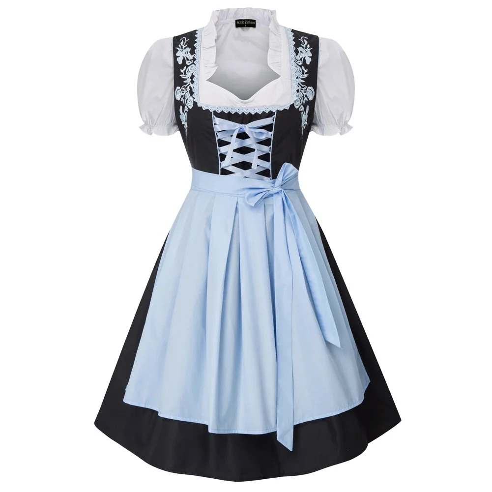 Женское платье с отделкой SD, костюмы, белый топ + платье + фартук, элегантные платья, комплект из 3 предметов