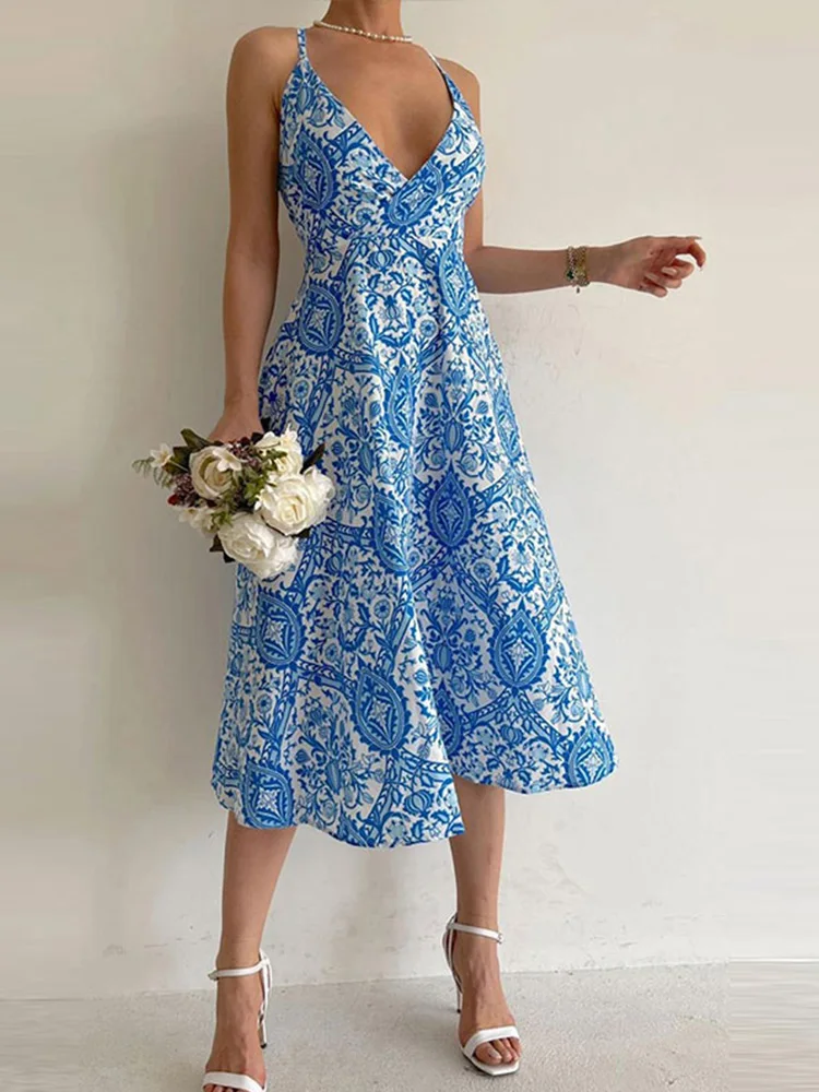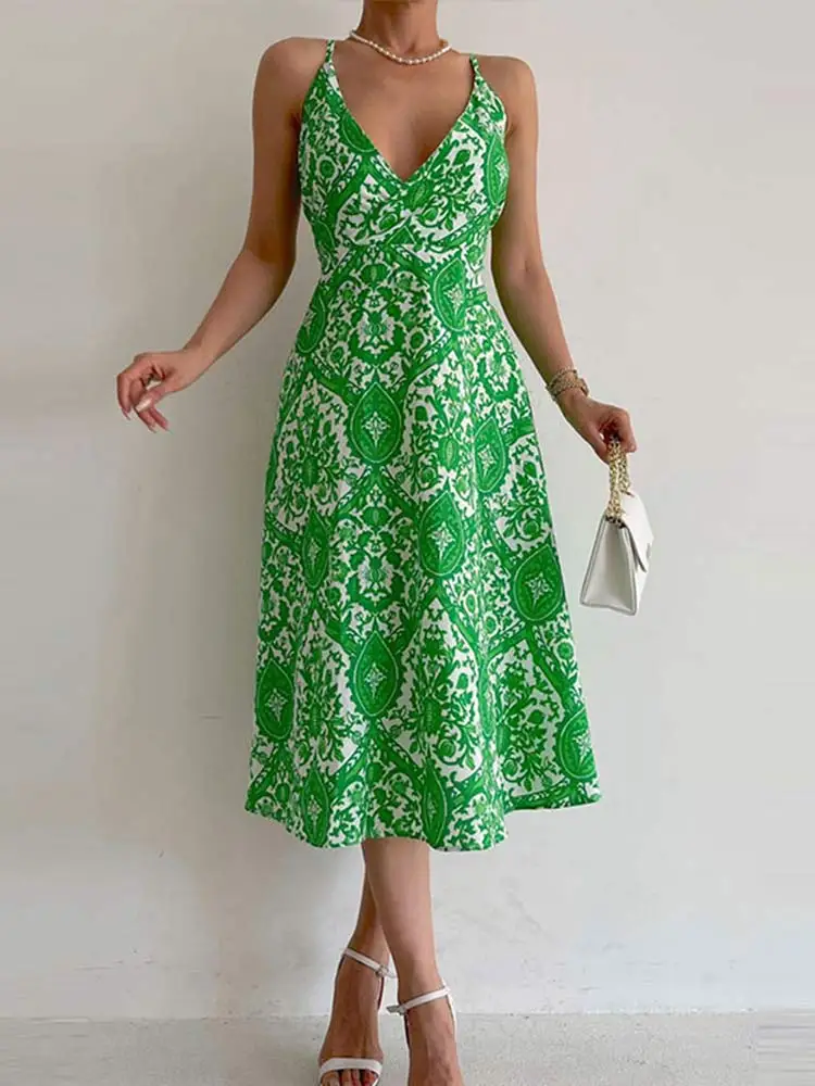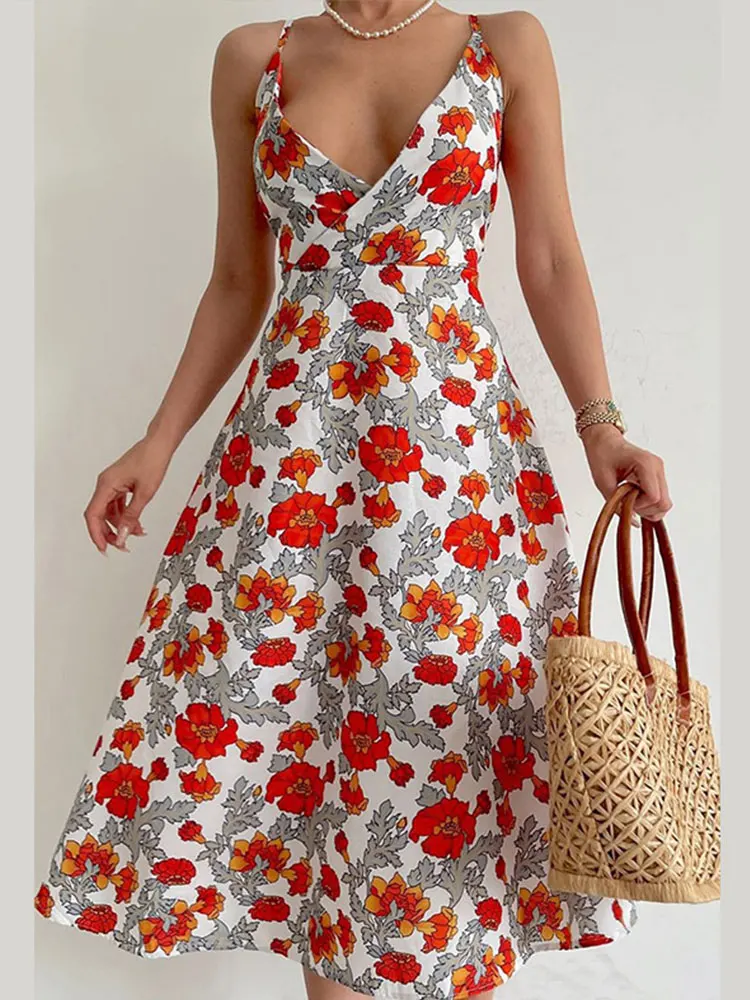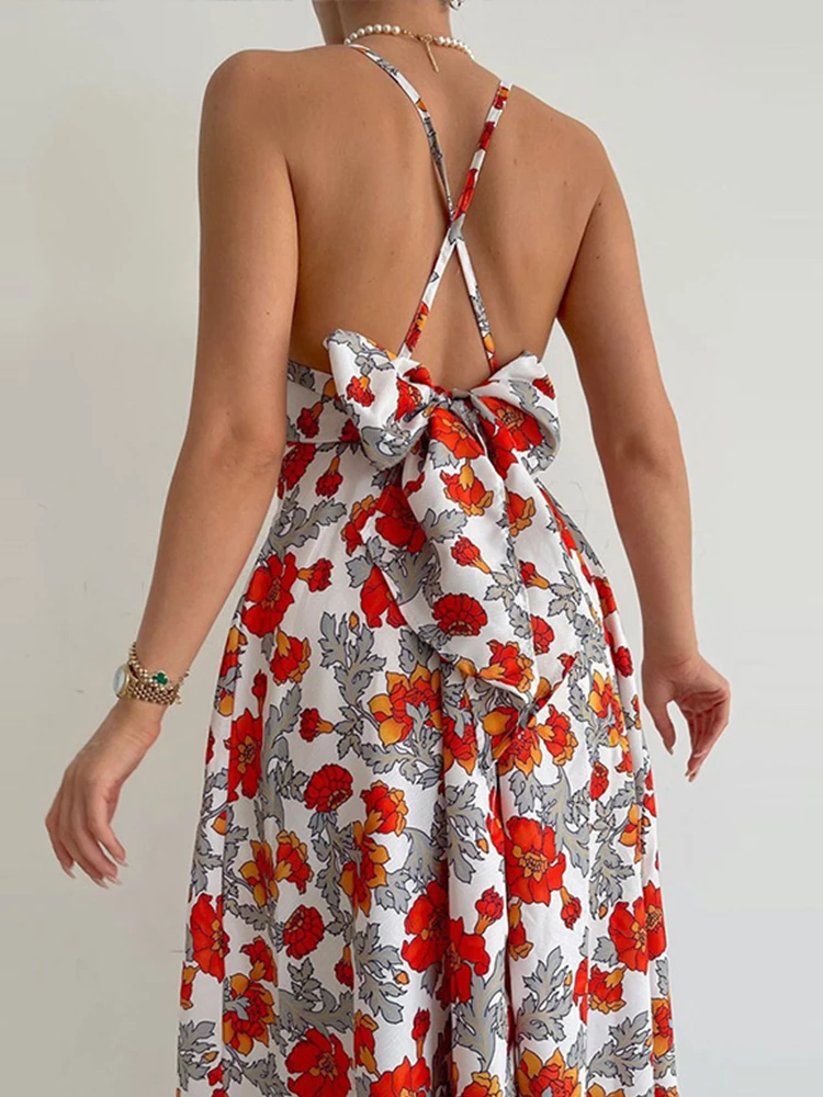 Женское платье с открытой спиной и бантом, милое летнее платье средней длины без рукавов с V-образным вырезом