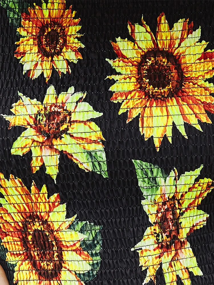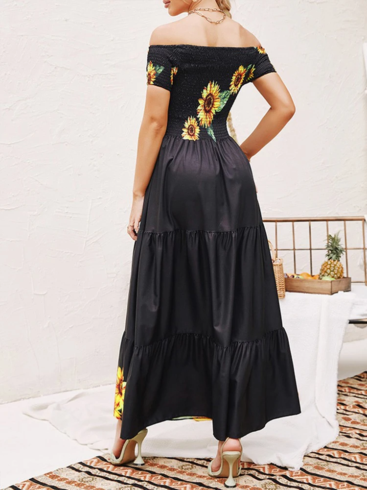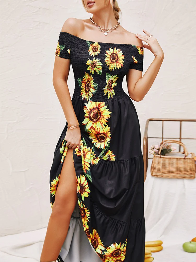 Женское платье с открытыми плечами, Повседневное платье макси в стиле бохо с принтом подсолнуха, лето 2022