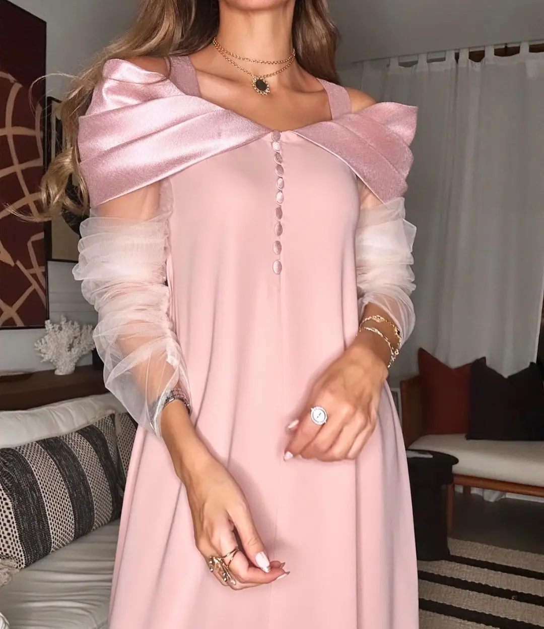 Женское платье с открытыми плечами, длинным рукавом и пуговицами