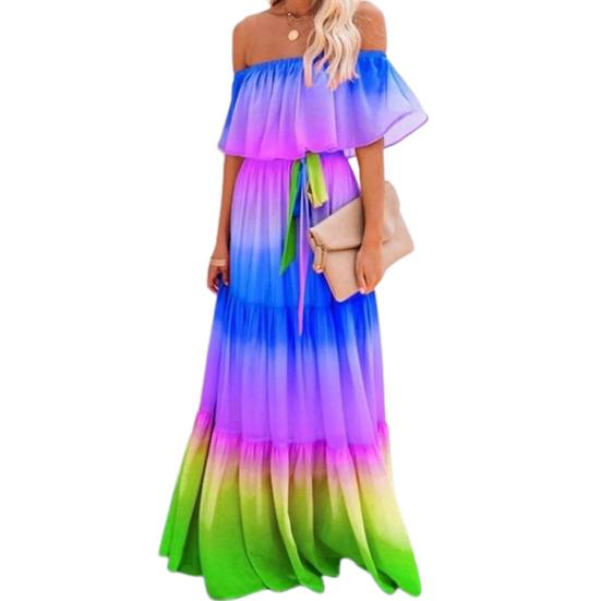 Женское платье с открытыми плечами и цветочным принтом, тонкое платье макси с большим подолом, уличная одежда 3XL синий