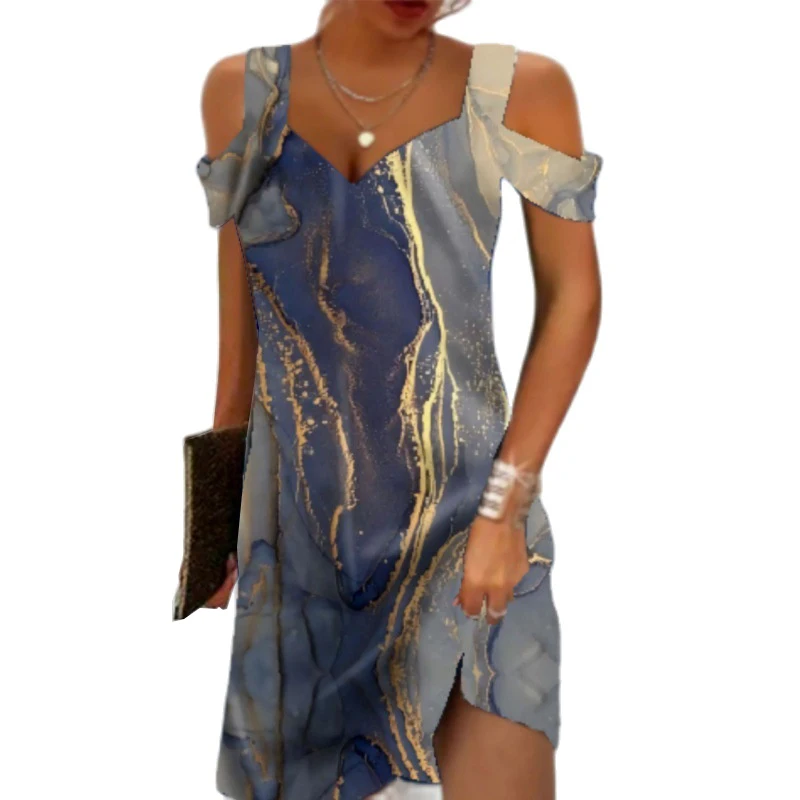 Женское платье с открытыми плечами, V-образным вырезом и цветочным принтом