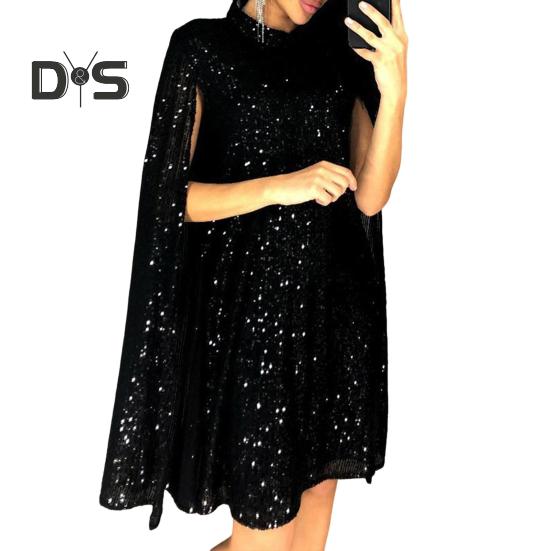 Женское платье с пайетками, воротник-стойка, без рукавов, разрез, мерцающее коктейльное платье, женское вечернее мини-платье, вечернее платье для знаменитостей S