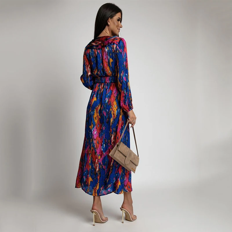 Женское платье с поясом, облегающее платье с длинным рукавом и V-образным вырезом, весна-лето 2023