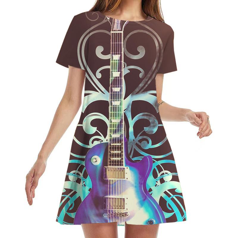 Женское платье с принтом в виде гитары в 3D-стиле, летняя мода, уличный стиль, хип-хоп, рок-музыка, трапециевидное платье, повседневные мини-платья с коротким рукавом для вечеринок M