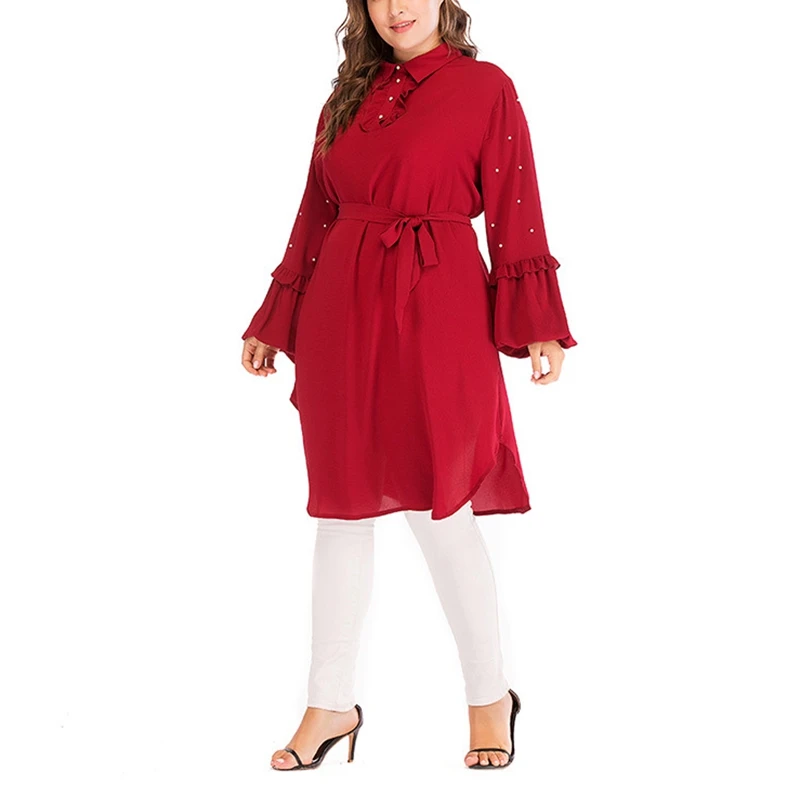 Женское платье с рукавами-пузырьками и бисером, модное мусульманское платье большого размера 4XL 5XL 6XL 7XL 8XL, обхват груди 135 см, с лацканами, Осень-зима