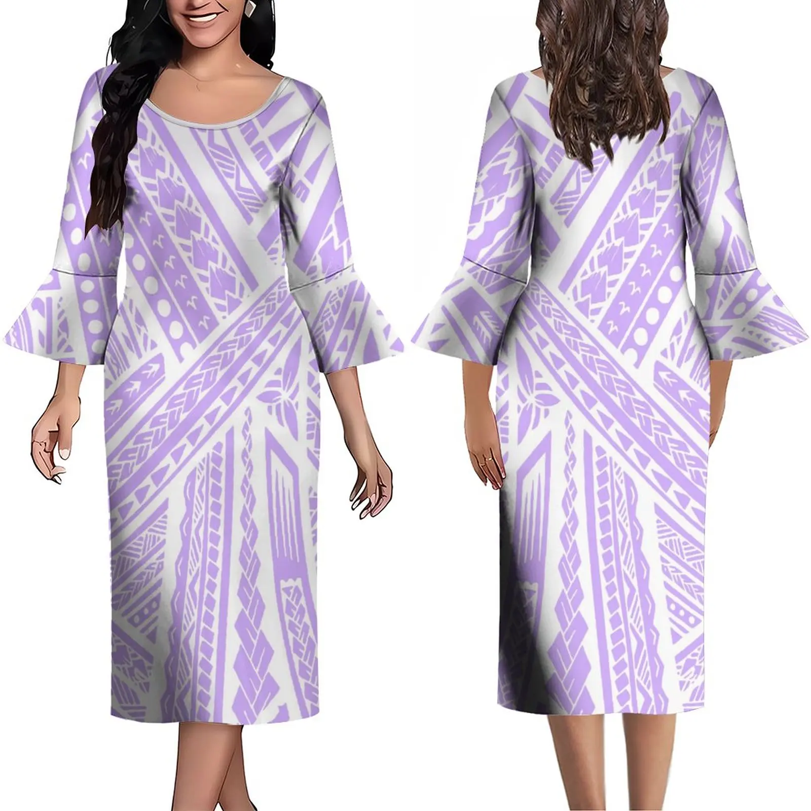 Женское платье с рюшами и манжетами, модное полинезийское платье с художественным узором, новый дизайн 2023