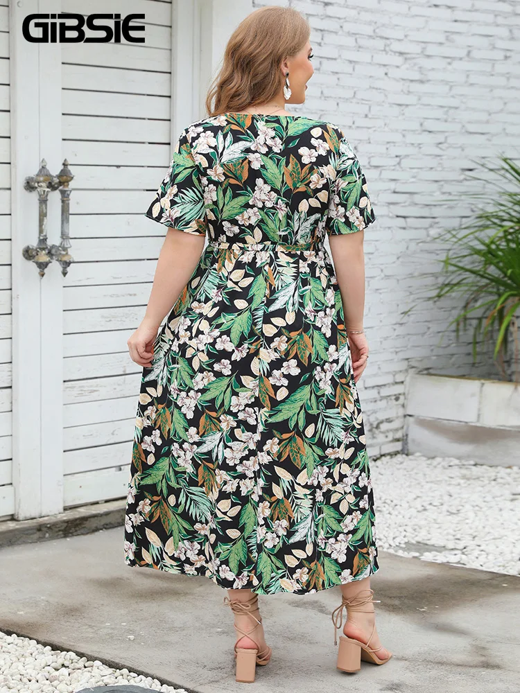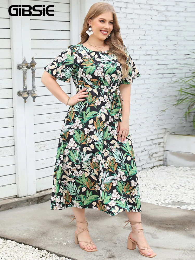 Женское платье с цветочным принтом, круглым вырезом и коротким рукавом