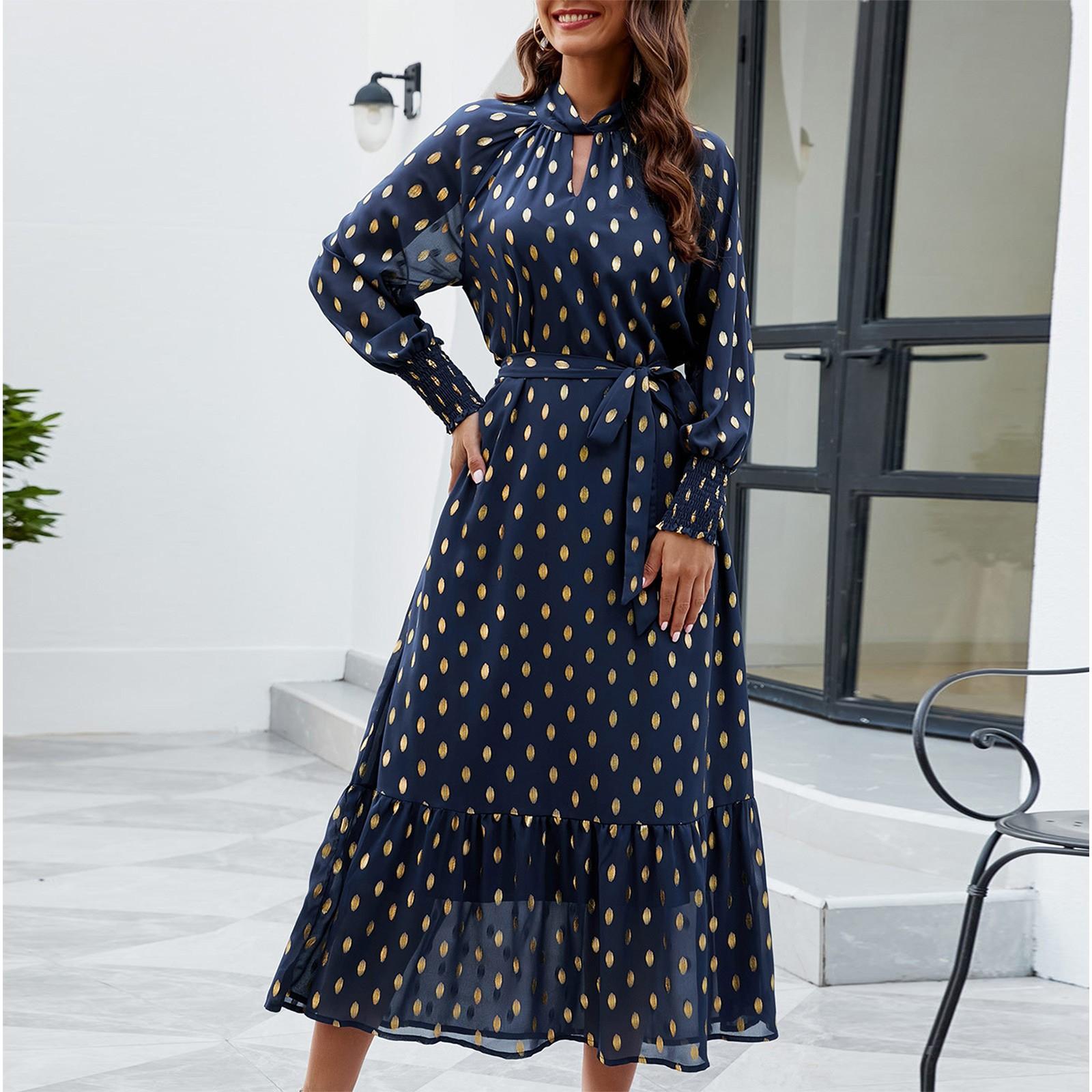 Женское платье с цветочным принтом, повседневное сексуальное вечернее платье со шнуровкой и рюшами XXL тёмно-синий