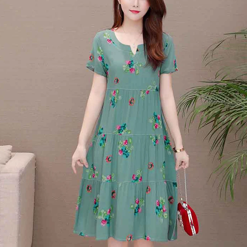 Женское платье с цветочным принтом, свободное Повседневное платье большого размера с V-образным вырезом, лето 2022